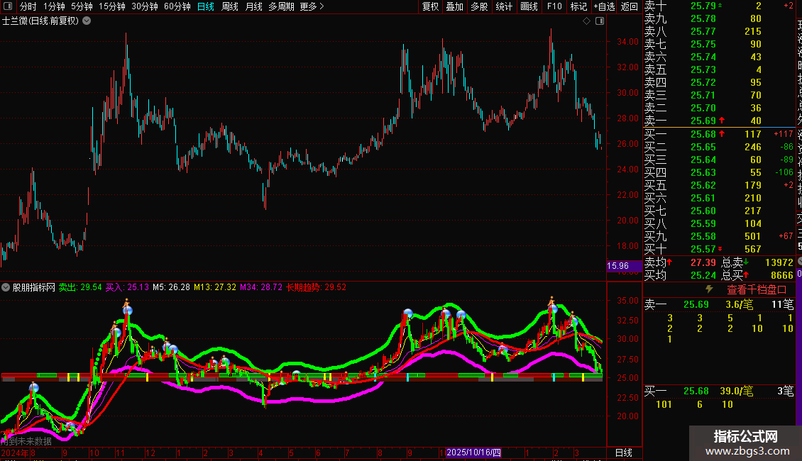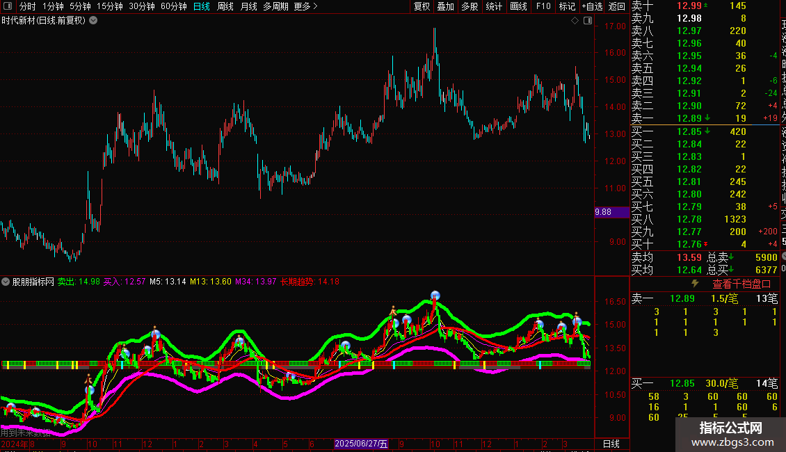 指标整合了趋势、动量、均线系统和形态识别,适用于中短线趋势跟踪和寻找买卖时机。