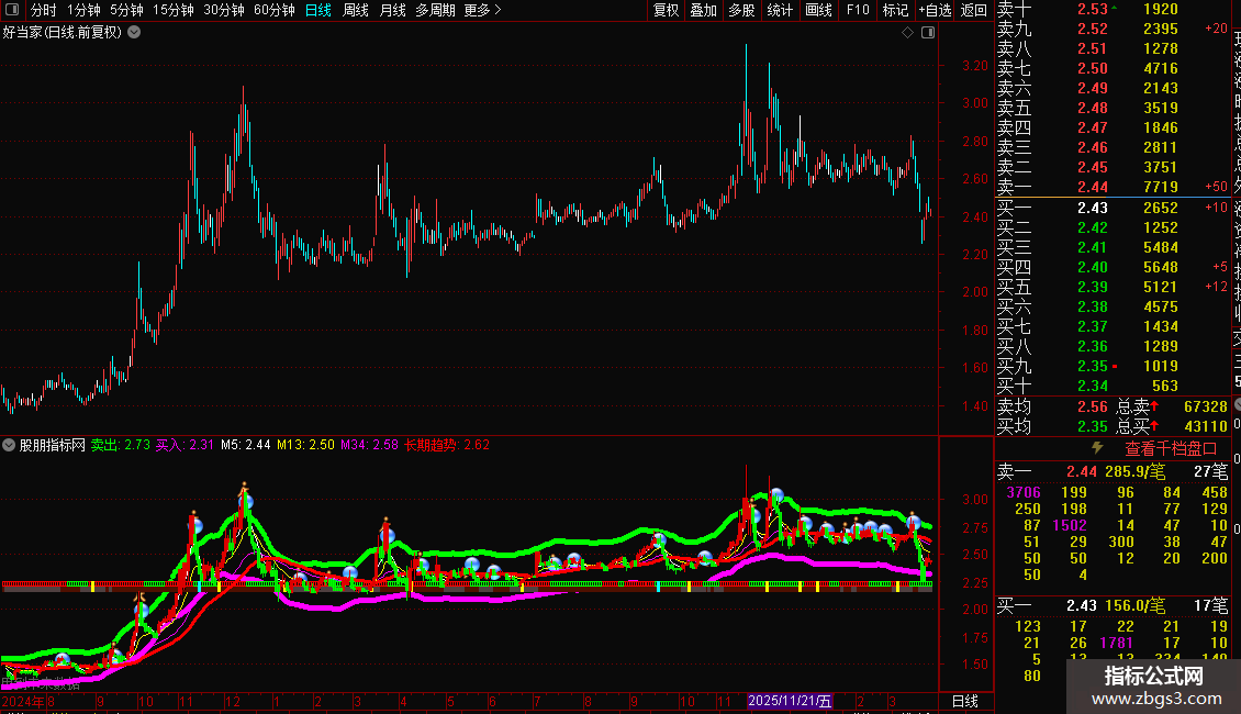 2. 多空趋势:结合多条均线(如5、13、34、55、89、144日)和“长期趋势”线,判断市场整体多空方向。