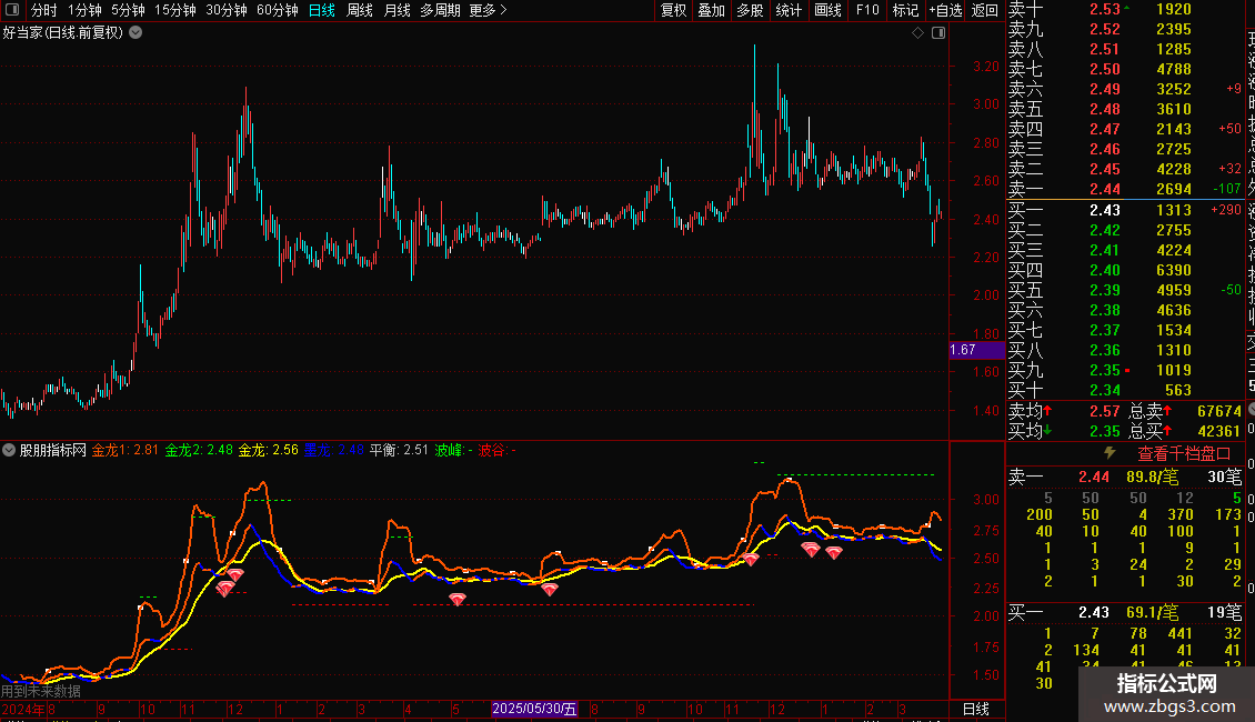 - 金龙2:收盘价的MM日指数移动平均线。