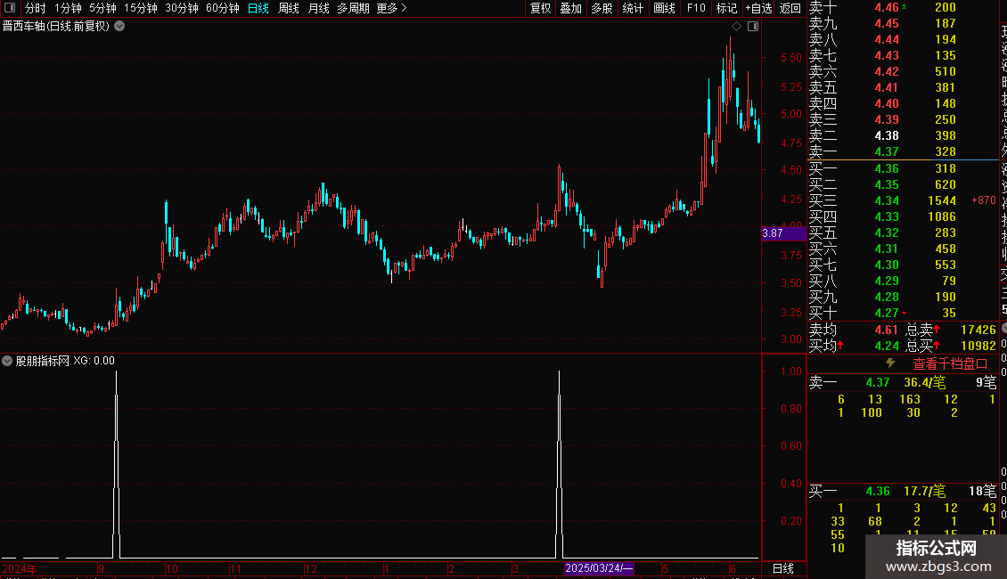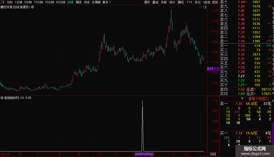 当以上三个条件同时满足时,公式输出选股信号(XG),提示可能存在短线强势上涨机会。指标主要用于捕捉伴随巨量突破关键压力位的启动点。