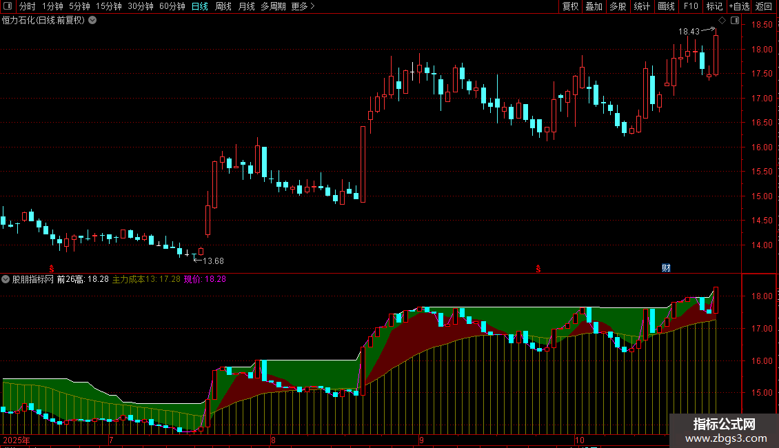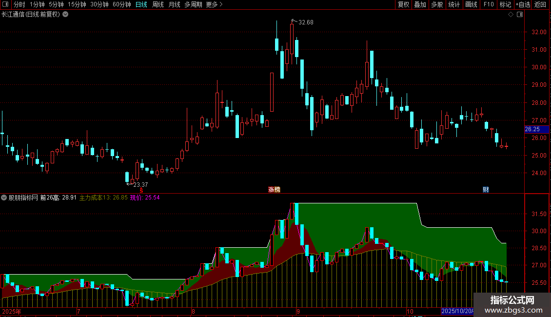 2. 价格通道:用色带直观展示5日均线与主力成本线、26日前高之间的空间,体现价格运行的相对位置与压力支撑。