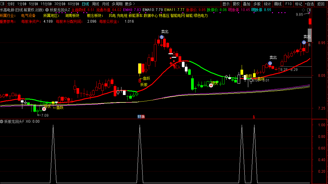 确认起爆:出现“妖股”信号或副图金叉信号,即为介入时机。