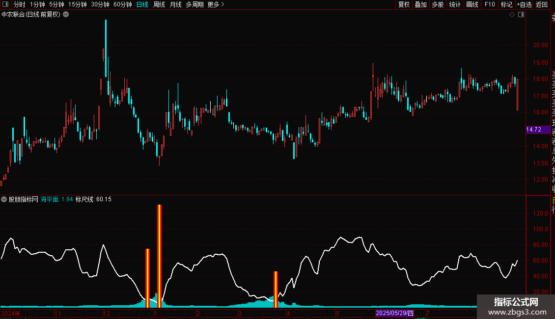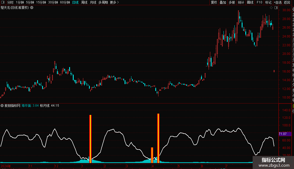 这款指标主要用于捕捉主力资金介入的起涨点。它通过两条线(海平面与标尺线)的动态关系,配合底部红柱(航标灯)的出现,来判断市场趋势的转折。指标试图在股价处于相对低位且即将反转时发出强烈的买入信号,同时利用黄色柱体辅助确认趋势的延续性。