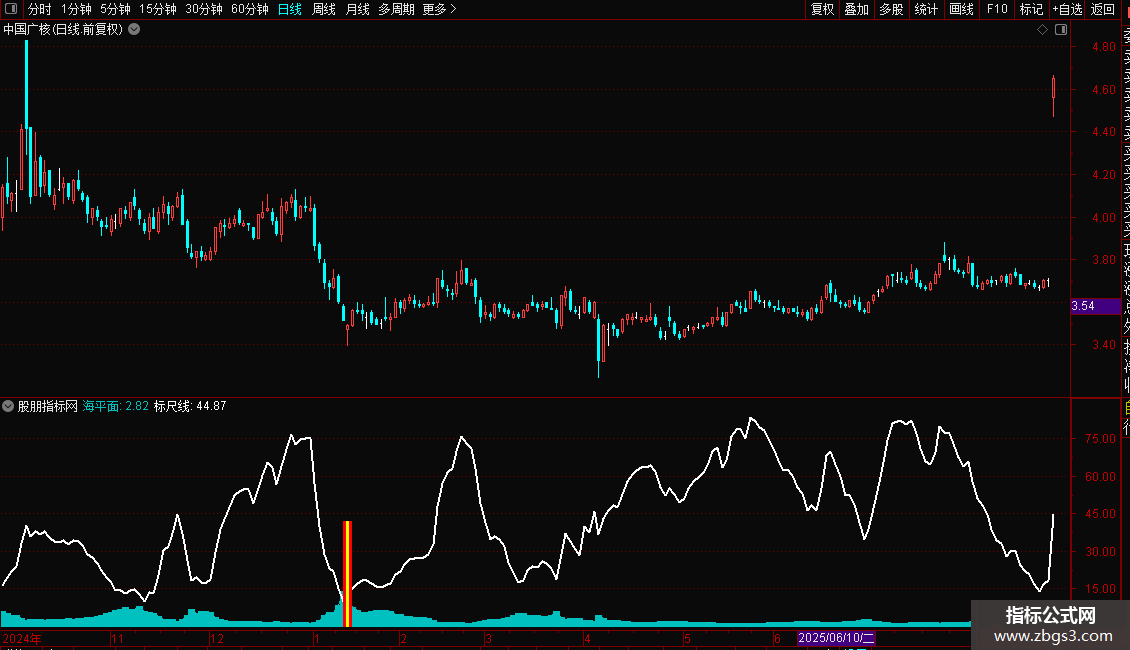 买入信号:当副图中出现红色的“航标灯”柱体时,代表指标监测到了潜在的底部反转信号,此时可视为买入或关注的时机。