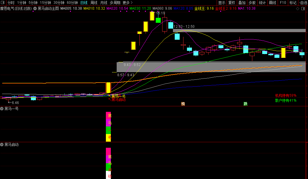 黑马启动属多头趋势顺势启动连续上涨,因拉升力度最猛称为“黑马启动”,多启动连续涨停,少数间歇性涨停。该信号出现频率低,黑马一号有时比黑马启动早一天出现。