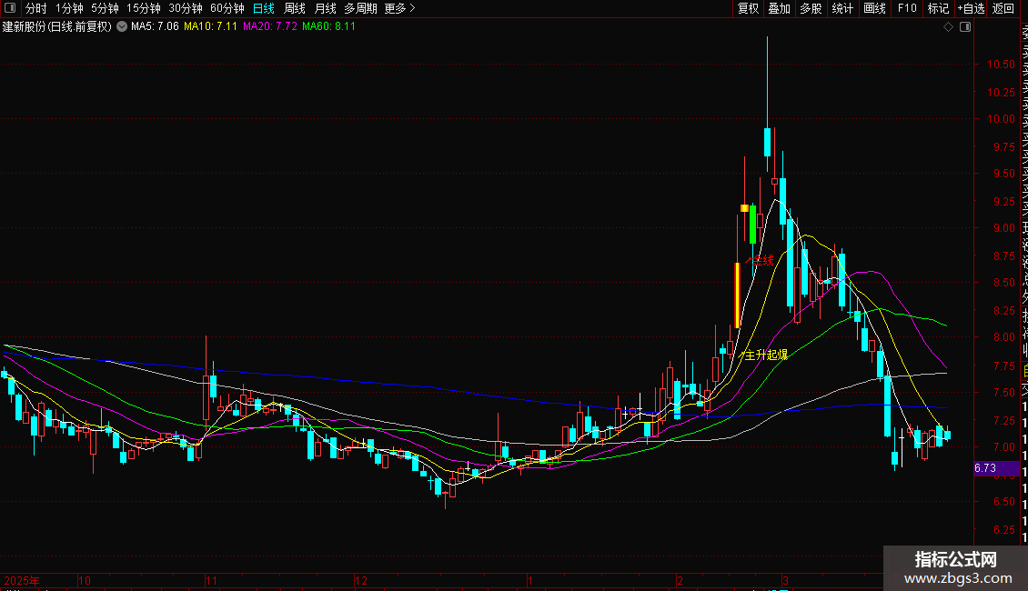 指标是一个主图指标,旨在捕捉个股结束盘整、进入主升浪的关键启动点。