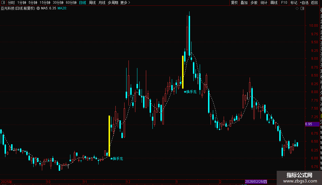 DRAWTEXT(VARG43,L*0.99,' ★换手龙'),COLORFFFF00;