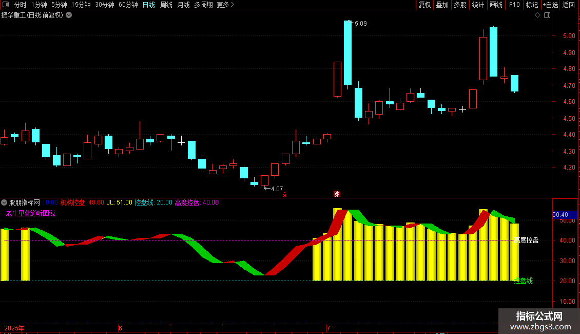 5. 设定控盘线(20)和高度控盘线(40)作为参考阈值。