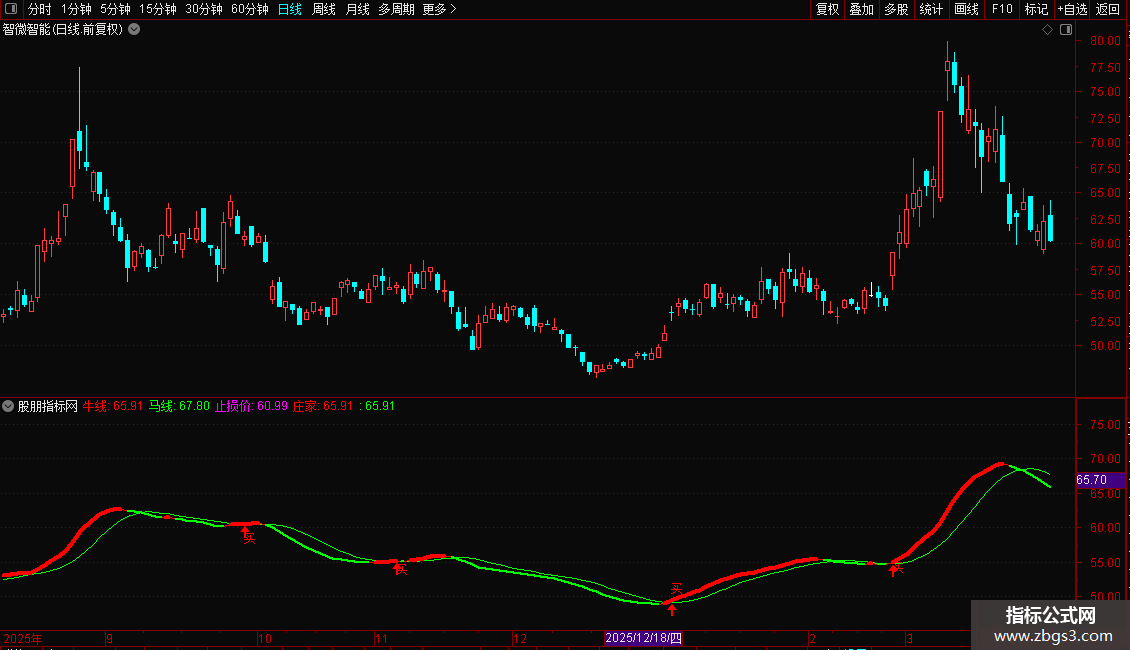 4. 趋势可视化:庄家线用粗红/细绿线直观显示其涨跌方向。
