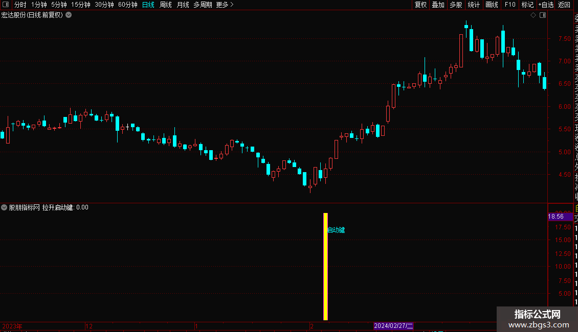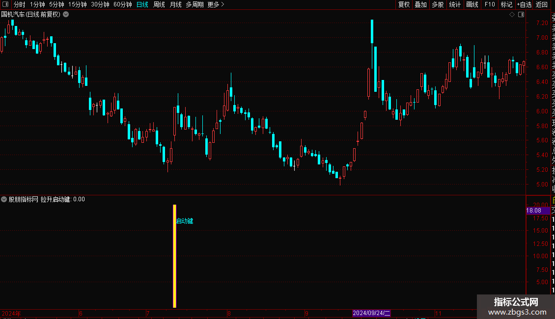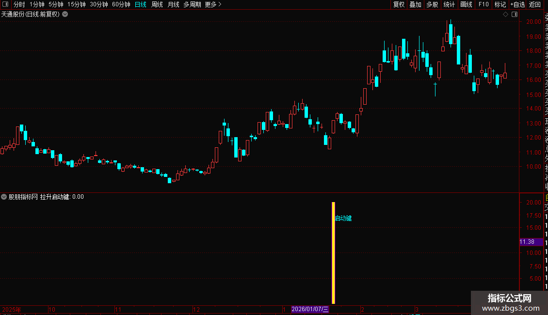 当副图出现彩色柱体并伴随“启动键”字样时,即为明确的短线介入信号。这通常意味着股价在经历短暂调整后,上涨动能重新积聚。建议在信号出现的当天尾盘择机介入,以规避盘中不确定性。止损可设置在买入当日K线的最低点。