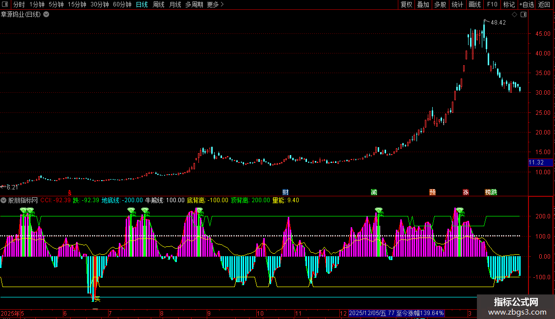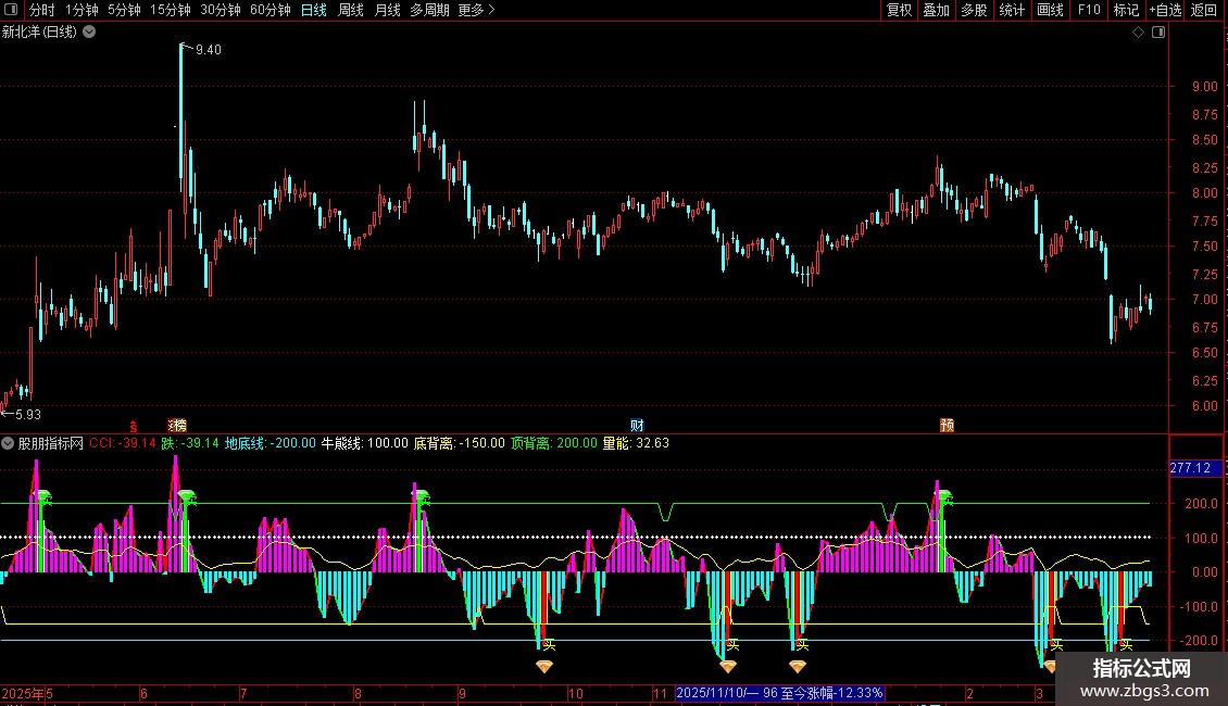 这是一个基于CCI(顺势指标)的设计指标,将传统CCI顺势指标进行深度可视化改造和精确信号强化的出色股票交易指标工具。