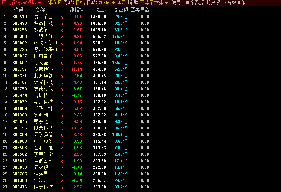 通达信【至尊早盘排序】竞价/选股精准筛选低风险高爆发力早盘强势源码