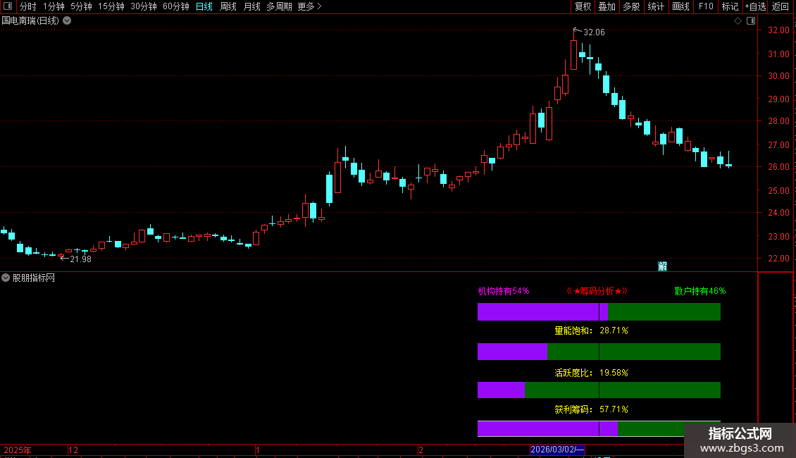 看主力占比:屏幕右上角显示“机构持有”与“散户持有”百分比。当机构持有比例持续上升且超过散户时,往往是主升浪启动的信号。