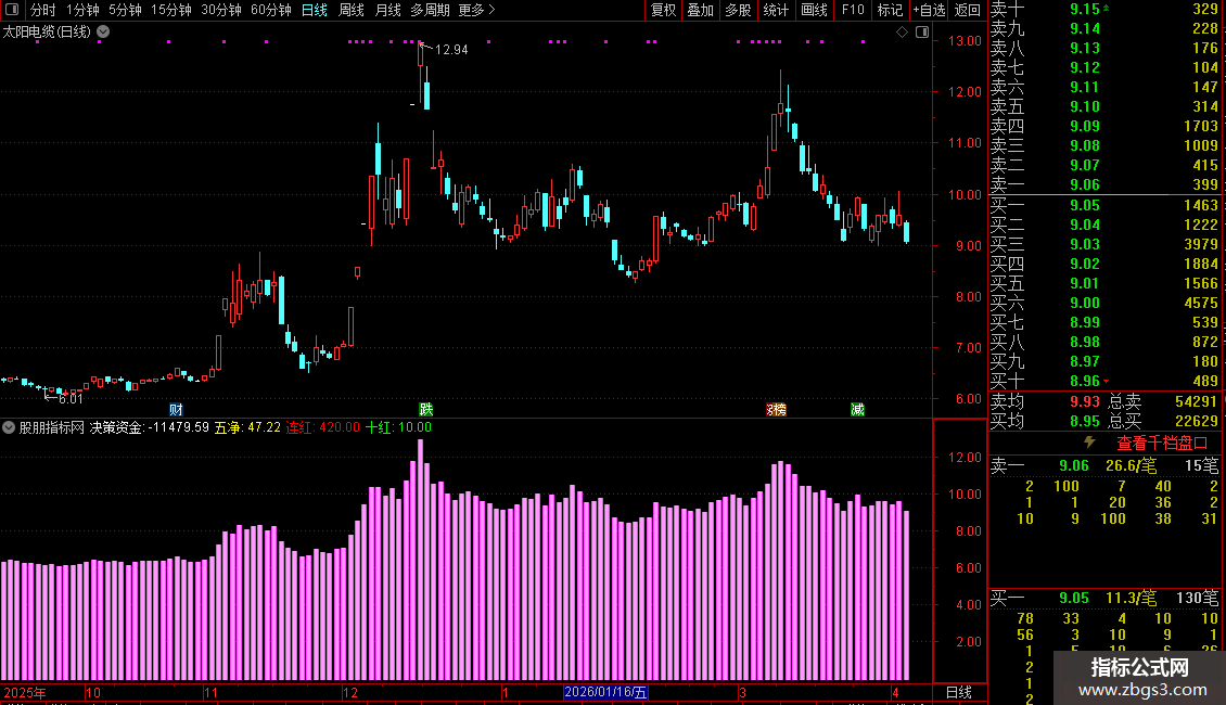 指标通常作为副图指标使用。通过观察彩色柱状图的变化、决策资金线的方向以及连红天数等,辅助判断资金流入流出的趋势和强度。