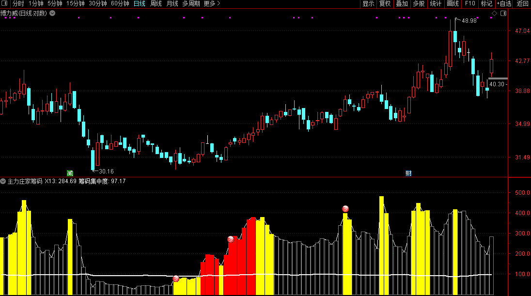 本指标主要对筹码集中度有直观的反应,帮助大家通过筹码,来预判是否接下来会拉升。我一直认为筹码才是股票拉升的核心指标。