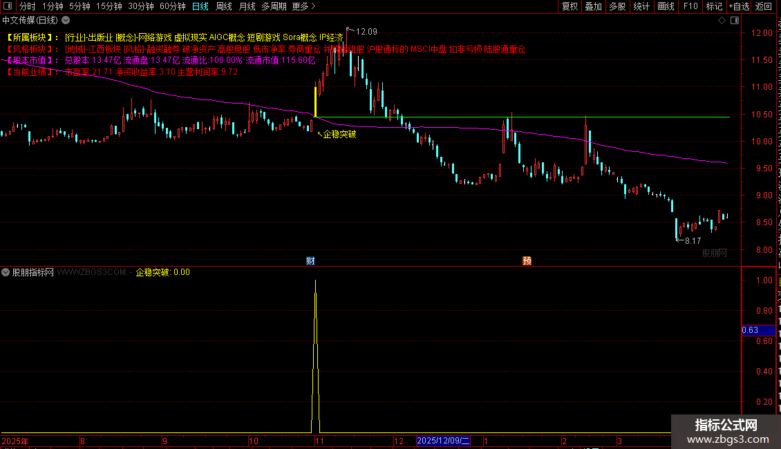 DRAWTEXT_FIX(ISLASTBAR,0.005,0.12,0,股本市值),COLORMAGENTA;