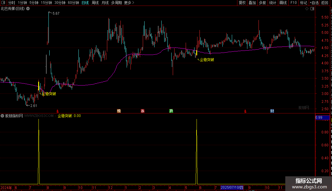 自定义技术指标,主要用于在K线图上显示股票的综合信息和交易信号。
