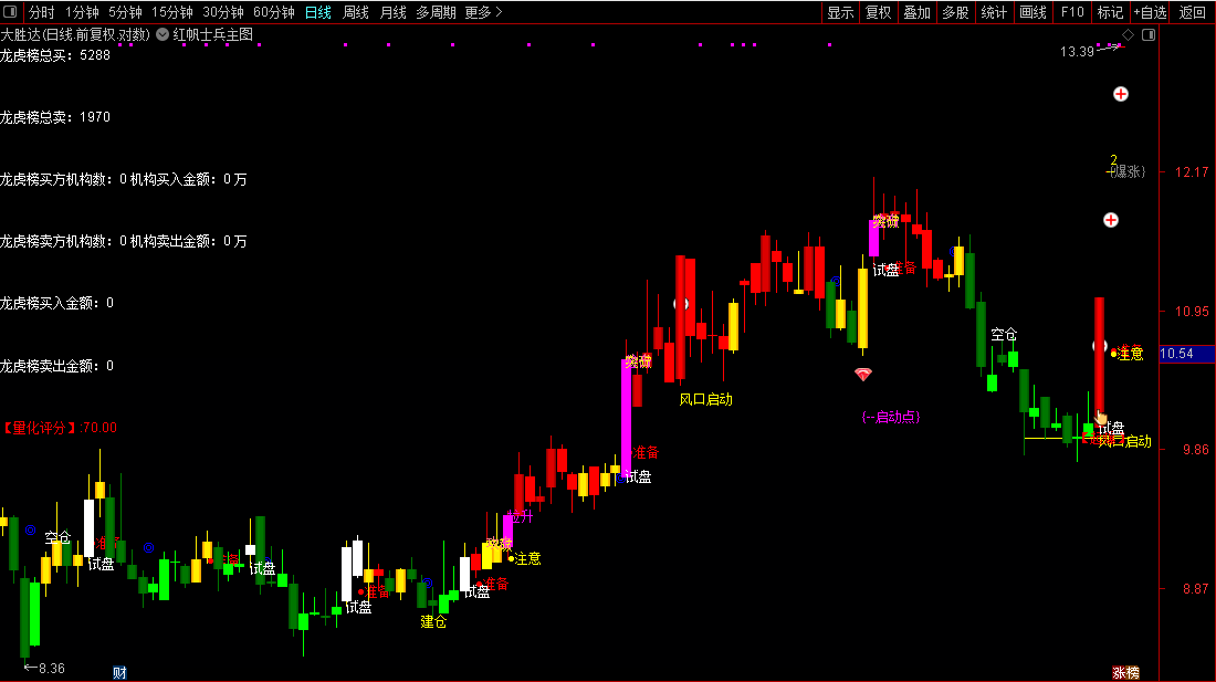 6. 风口启动(蓝色K线 + “风口启动”文字)条件:KDJ金叉 + 小市值(0-80亿) + 股价2-22元 + 非ST/创业板/科创板 + 近两日首次涨停用法:专门捕捉小盘首板股,适合打板策略