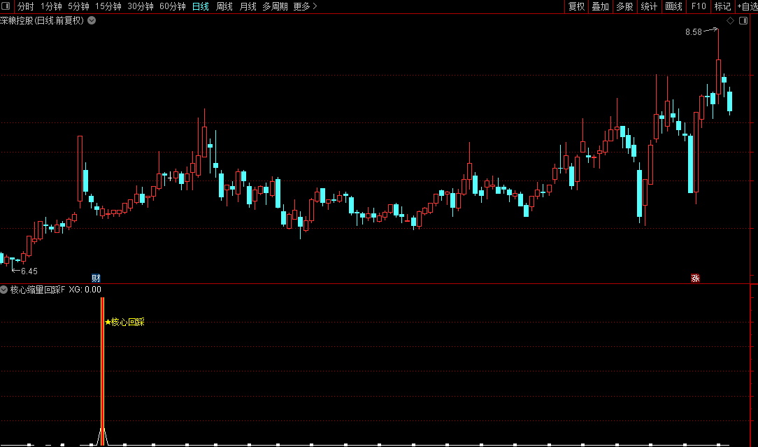 通达信【核心缩量回踩】副图/选股涨停基因拉升后出现极度缩量形态源码