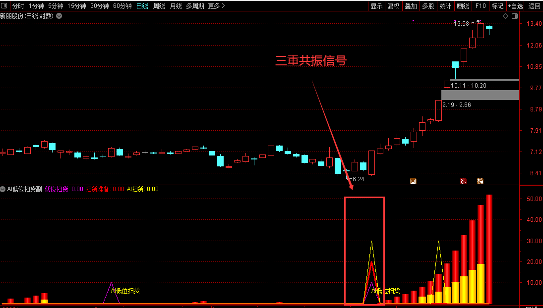 AI扫货(黄柱):涨停确认信号,代表个股不仅处于低位,还具备了强势股的涨停基因。