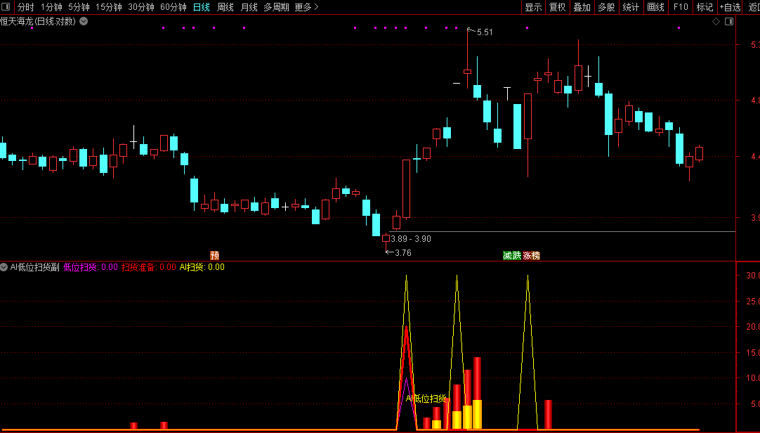 扫货准备(红柱):基于多周期乖离率计算,锁定“跌无可跌”的区域,提示主力开始关注。