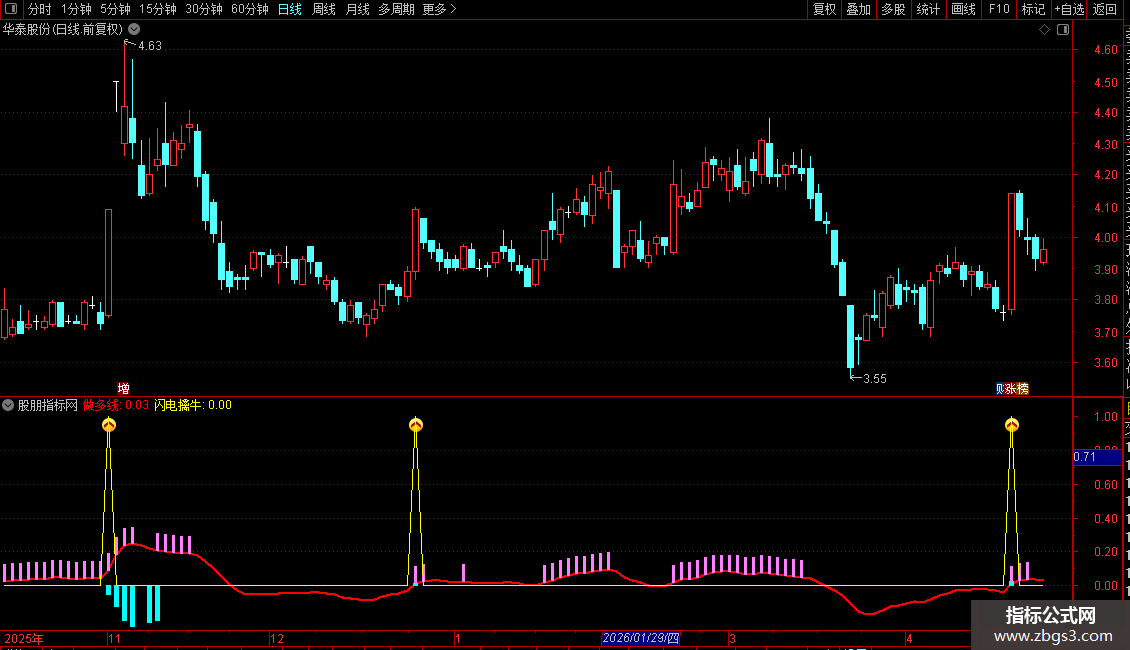 指标通过融合价格、成交量与成本,综合判断个股的做多动能与主力强度。当“做多线”由负转正并持续上行,且“主力强度”柱状线同步放大时,表明多方力量占据主导,是潜在的介入时机。当出现“闪电擒牛”信号时,意味着股价短期动能强劲,可能迎来快速拉升,可视为短线追涨的参考。操作上,宜在“做多线”金叉向上时关注,结合“主力强度”确认,并在出现“闪电擒牛”时把握加速机会。