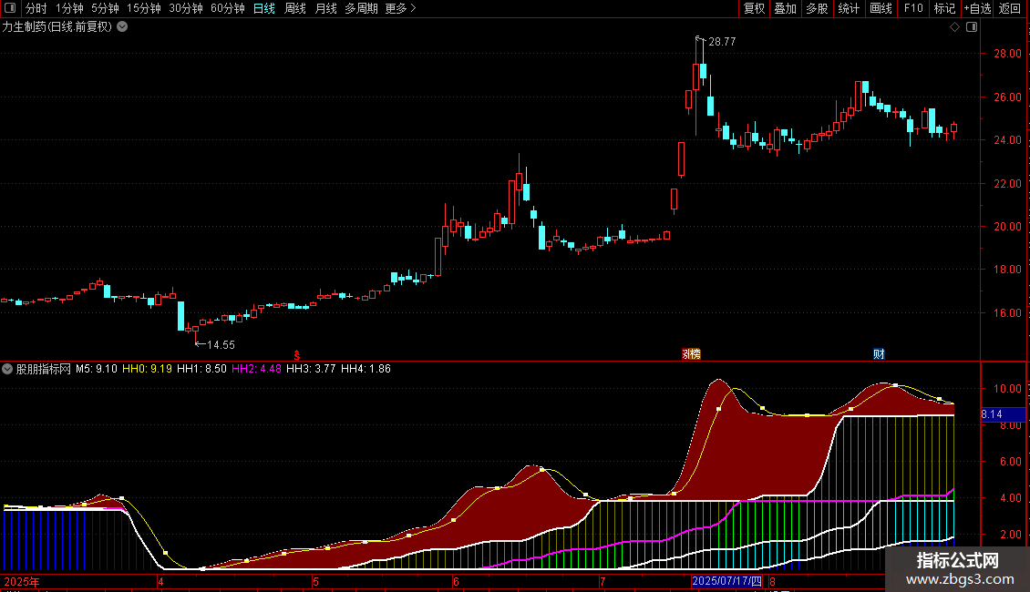 该公式为多层级价格动量指标,用于识别趋势强度与支撑/压力区域。