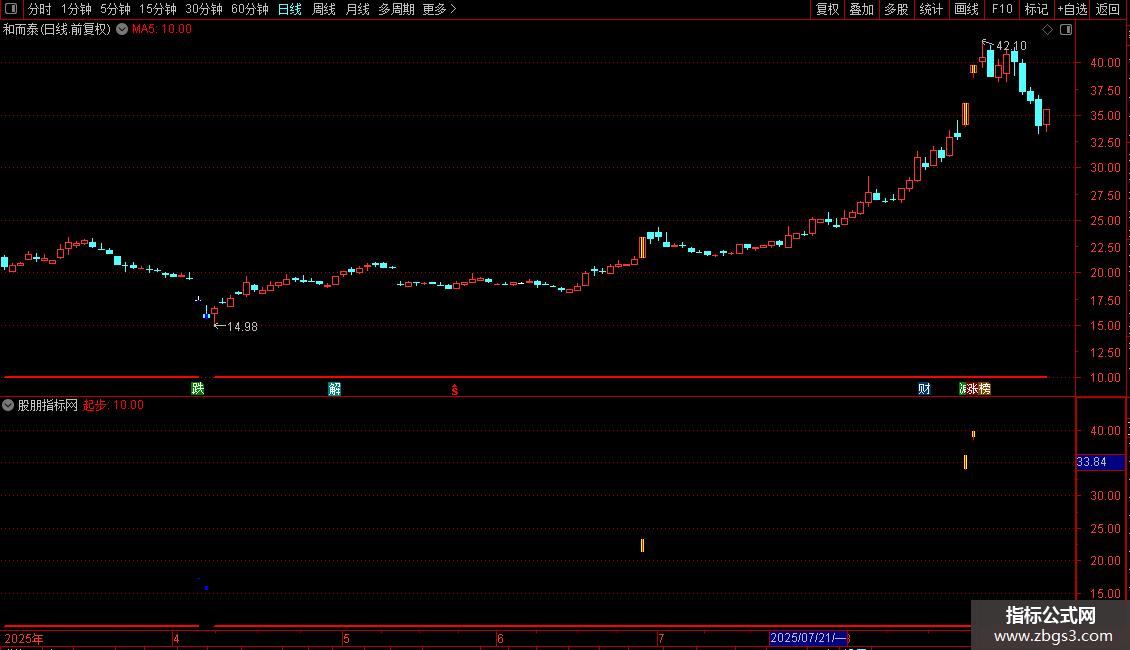 使用法:直接加载到副图或主图,观察红色粗线出现时机,结合涨跌停标记判断极端行情。