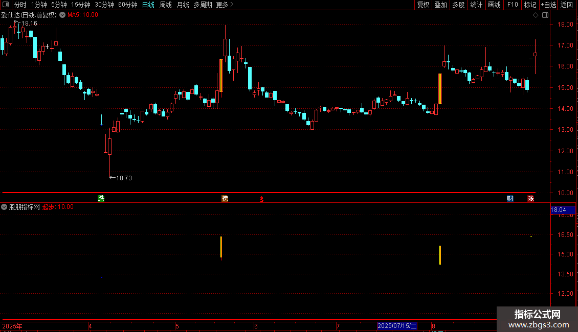 起步:IF((RS1 >MA(C,10)),10,DRAWNULL),,COLORRED,LINETHICK2;