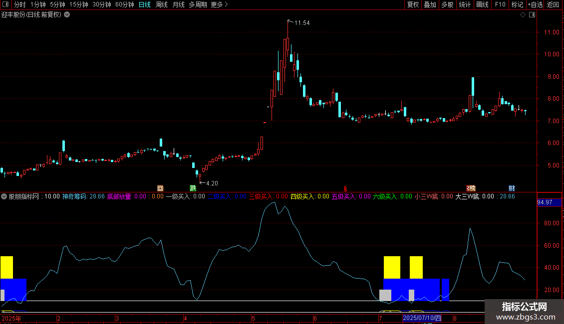 五级买入:(COUNT(一级买入,4)>=1 AND COUNT(二级买入,4)>=1 AND COUNT(三级买入,4)>=1) AND 神奇筹码<15;
