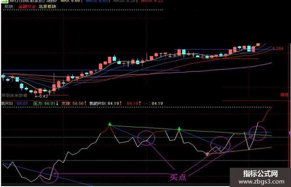 具体看RSI突破压力线就是买点,特别在一波下跌之后出现在低位突破的效果明显,指标有未来函数因为是画线功能,不喜欢的请绕道,如有雷同纯数巧合,不当之处请前辈们斧正优化。