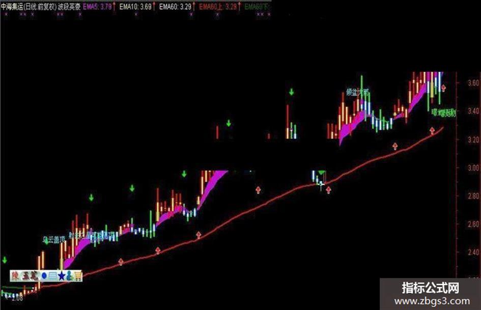 EMA60下:IF(EMA60<REF(EMA60,1),EMA60,DRAWNULL),COLOR006400,LINETHICK2;