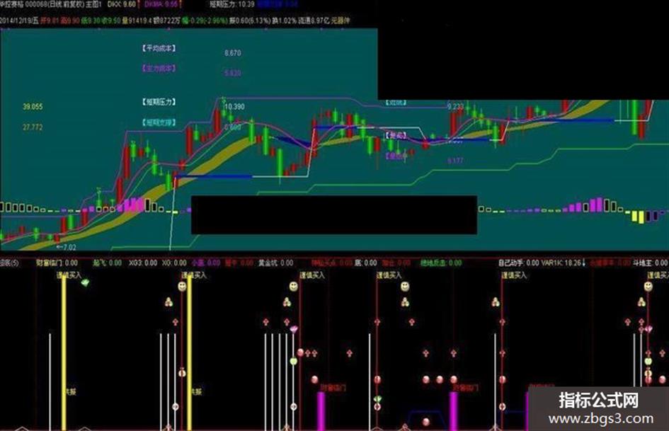 极品底:=IF((MA(C,5)-C)/C>0.04 AND (MA(C,10)-MA(C,5))/MA(C,5)>0.04,23,0),LINETHICK2,COLORFF00FF;