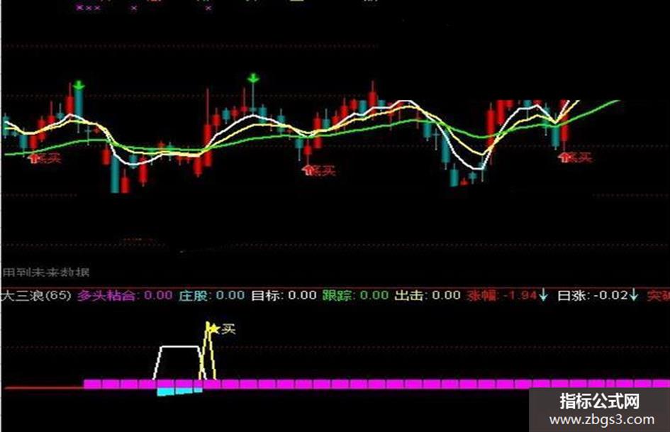 多头粘合:IF(多头 AND 粘合,1,0),COLORFF00FF,POINTDOT,NODRAW;
