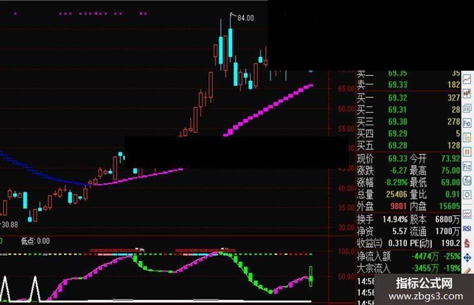 STICKLINE(PP103<PP101 AND ISLASTBAR,30,70,1,1),COLORGREEN;{甭看了,快找高人指点或者骂街,好像要大跌,绿色};