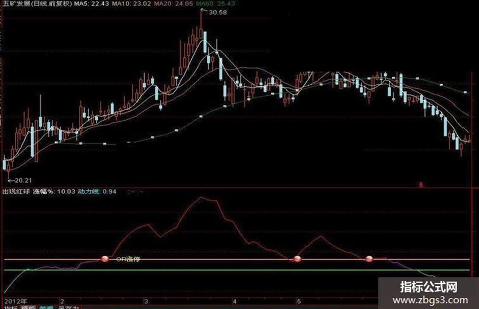 IF(动力线>1.03,动力线,DRAWNULL),COLORRED;