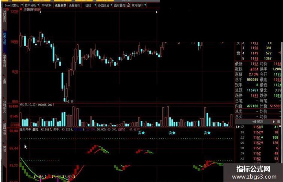 1。轨道线:类似布林通道线,一般股价到达上轨有压力,股价到达下轨有支持;连续涨停个股无效。3。升跌势线:出现升势(洋红线)信号时,股价处于上升波段;出现跌势(白线)信号时,股价处于下跌波段。 4。短线买卖:出现“买”时,实时提示短线买;出现“卖”时,实时提示短线卖。 5。疯狂线:一般股价到达疯狂线时必须减磅。超低线时买。