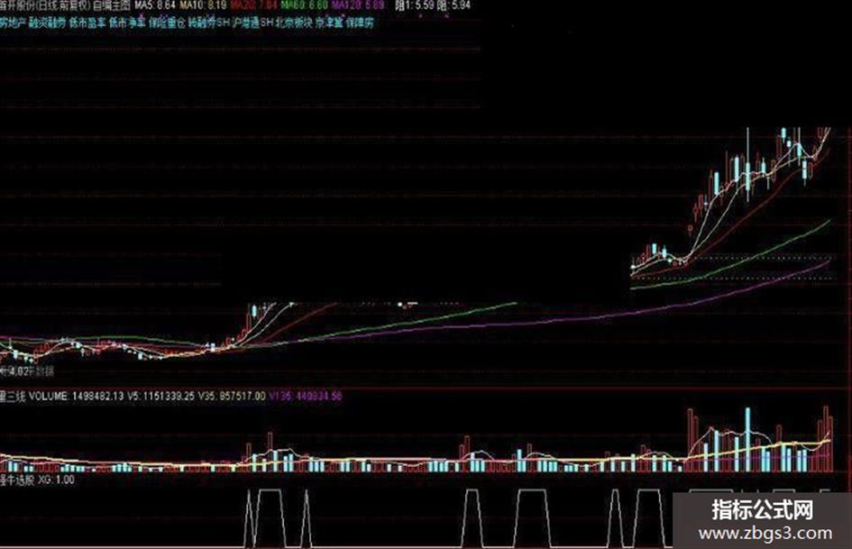 XG5_20:=MA(C,5)>MA(C,20) OR MA(C,5)=MA(C,20) OR CROSS(MA(C,5),MA(C,20));