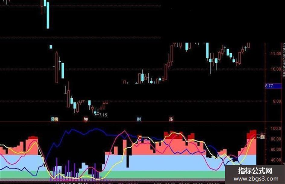 吸筹:=IF(VAR8B>100,100,VAR8B)*VAR1B,COLORRED,LINETHICK0;