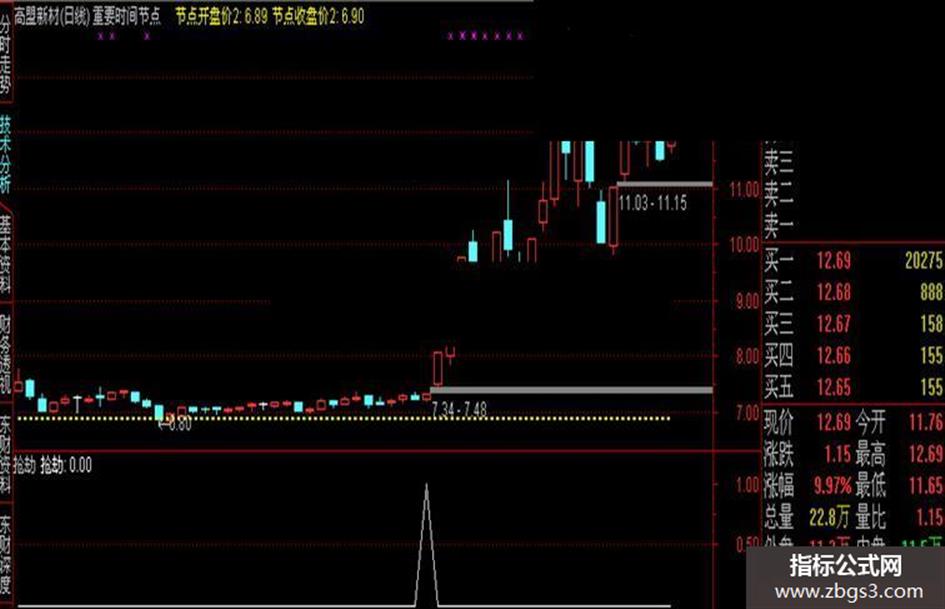 A1:=REF(C,1); A2:=DCLOSE; A3:=(A2-A1)/A1*100; AA1:=(A3-REF(A3,1)); AA2:=9.8; 选股1:=CROSS(AA1,AA2); A11:=REF(V,1); A12:=DVOL; A13:=A12/A11; AA3:=(A13-REF(A13,1)); AA4:=500; 选股2:=CROSS(AA3,AA4); 抢劫:选股1 AND 选股2;