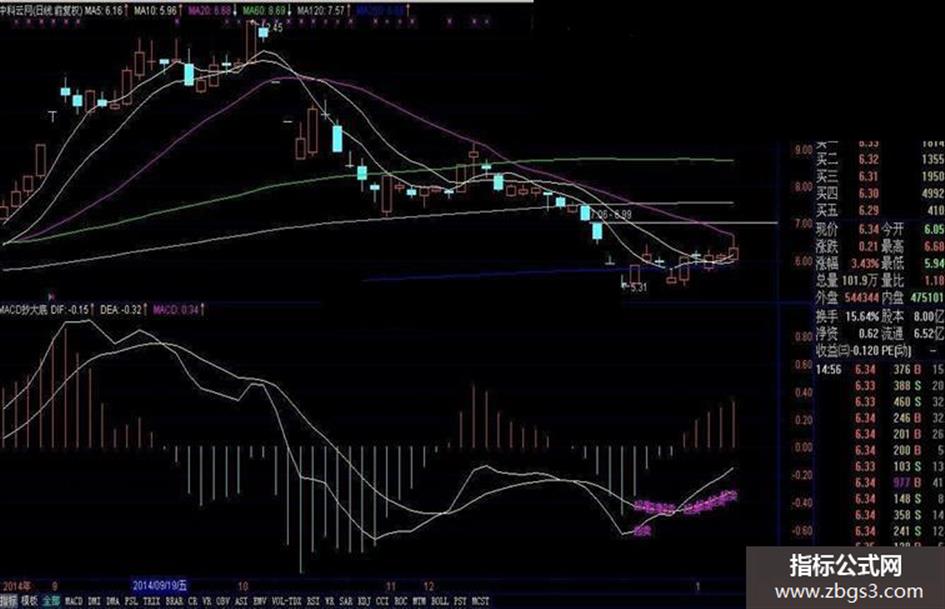 DRAWTEXT(M>30 AND DEA<-0.35 AND ABS(DEA/C)>0.035 AND DIF>REF(DIF,1),DEA,'超卖'),COLORMAGENTA;