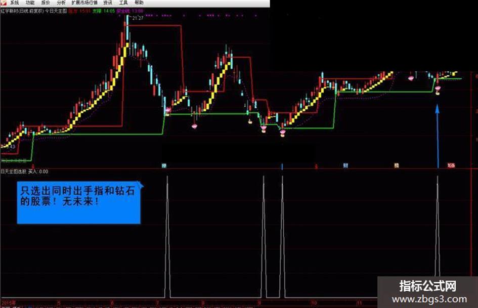 日天主图之波段底部选股公式:只选出同时出现手指和钻石的股票!