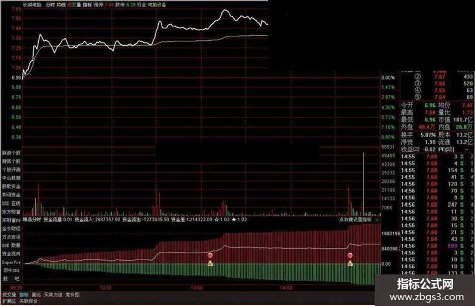 输出资金流入:如果收盘价>1日前的收盘价,返回收盘价*成交量(手),否则返回0的当前离开盘分钟数日累和,STICK,画红色