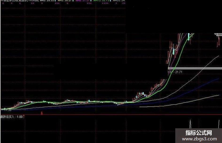TJ1:=EMA((C-L),20)/EMA((H-L),20)*100; TJ2:=(L-ABS(MIN(C,O)))/L<=1; TJ3:=ABS((L-MA(C,5)))/L*100>10 AND MA(C,5)<REF(MA(C,5),1) AND MA(C,5)>L; TJ4:=TJ1 AND TJ2 AND TJ3; IF(TJ4 AND TJ1>REF(TJ1,1),TJ4,0);