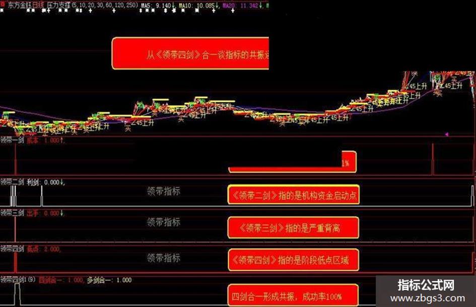 指标共振的简单引用编写 以《领带四剑》为例: cb:=if(count("领带一剑.成本">0,n)>0,1,0); lj:=if(count("领带二剑.利剑">0,n)>0,1,0); cs:=if(count("领带三剑.出手">0,n)>0,1,0); dd:=if(count("领带四剑.低点">0,n)>0,1,0); 四剑合一:cd or lj or cb or dd;