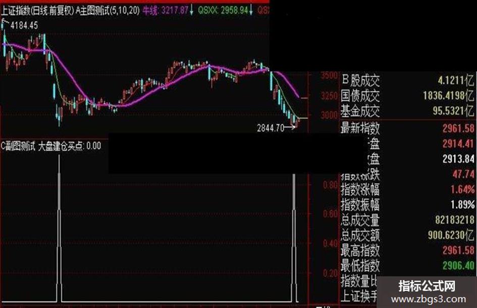 VARGDT1:=LLV(INDEXL,120); VARGDT2:=HHV(INDEXH,250); 操盘线:=EMA((INDEXC-VARGDT1)/(VARGDT2-VARGDT1)*4,4); 大盘建仓买点:CROSS(0.3,操盘线);