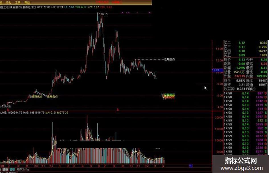 DRAWTEXT(ISLASTBAR,H1,'近期高点')COLORWHITE;
