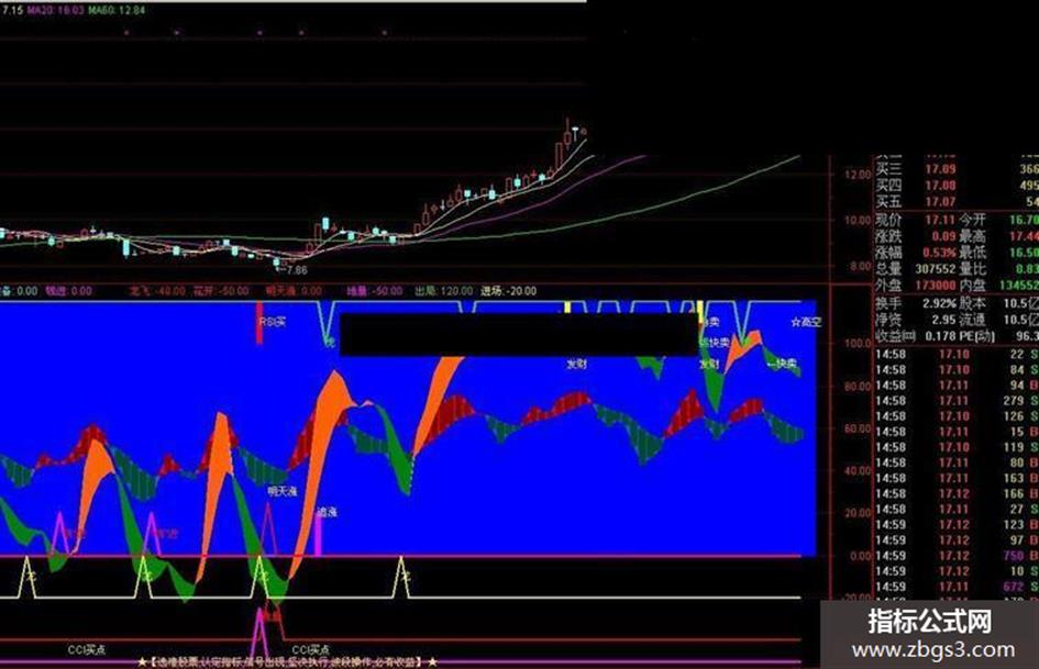 {DRAWTEXT(WZ=1,50,'【选准股票,认定指标,信号出现,坚决执行,波段操作,必有收益】'),COLORYELLOW;}