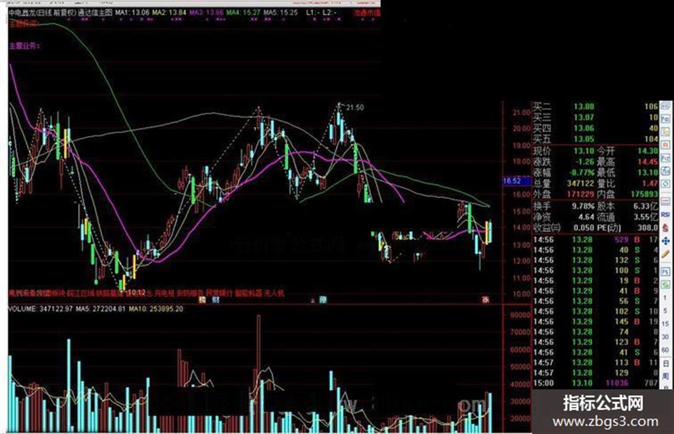 {通达信主图指标,板块及热点题材、缠论划线、20日均线加粗}