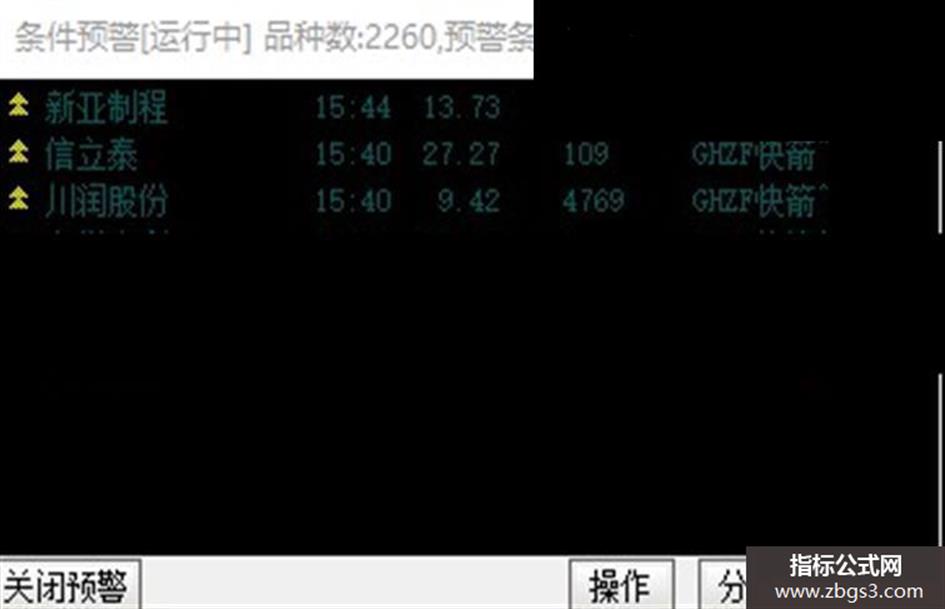 盘中预警公式——“GHZF快箭^”:(完密时限) 快箭出手,攻其必救, 注意由于短时间快速上长升令5日线与10日线发散太历害并看起来有点发软时不要参与